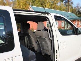 Простоватая архитектура центральной консоли и панели приборов компенсируется хорошим качеством отделочных материалов, а также грамотной сборкой и подгонкой панелей. Все органы управления находятся в непосредственной близости от водителя, поэтому ему не придется отвлекаться от дороги. Сидеть на передних креслах удобно и комфортно, однако настоящий комфорт царит в задней части салона – два пассажирских ряда оснащены подлокотниками и экраном для просмотра видео в формате DVD, а пространства для ног между сиденьями хватит даже рослому человеку. Если убрать из салона все задние кресла, то можно получить вместительный грузовой отсек, поэтому проблем с транспортировкой габаритных вещей возникнуть не должно.